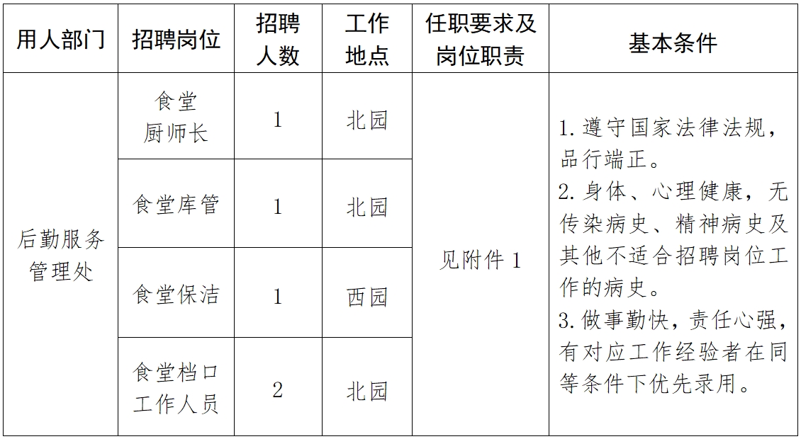 因工作需要,现面向社会公开招聘食堂工作人员数名。有关事项公告如下:
