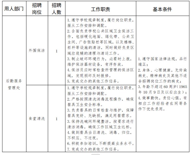 因工作需要,现面向社会公开招聘后勤工作人员2名。有关事项公告如下:
