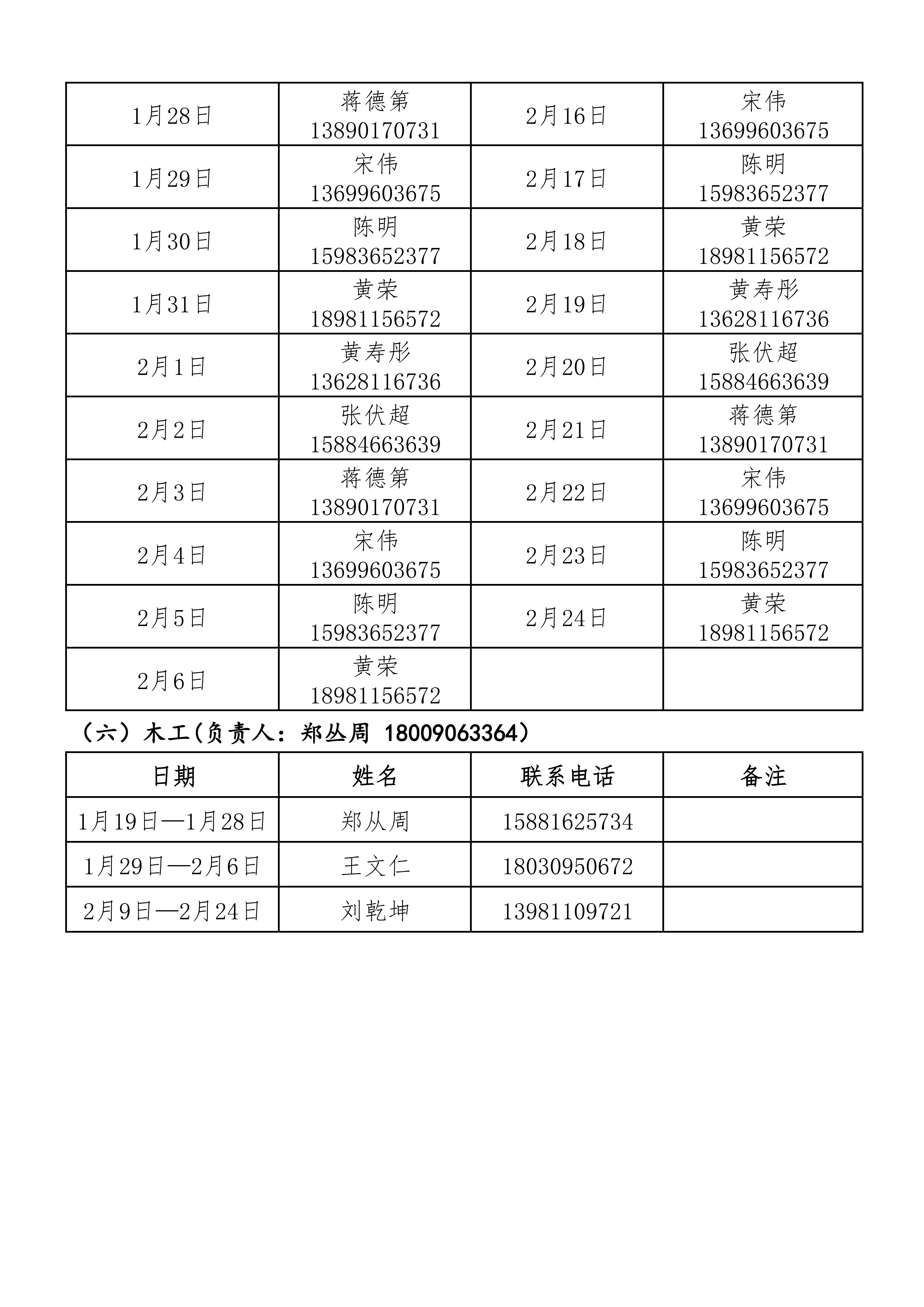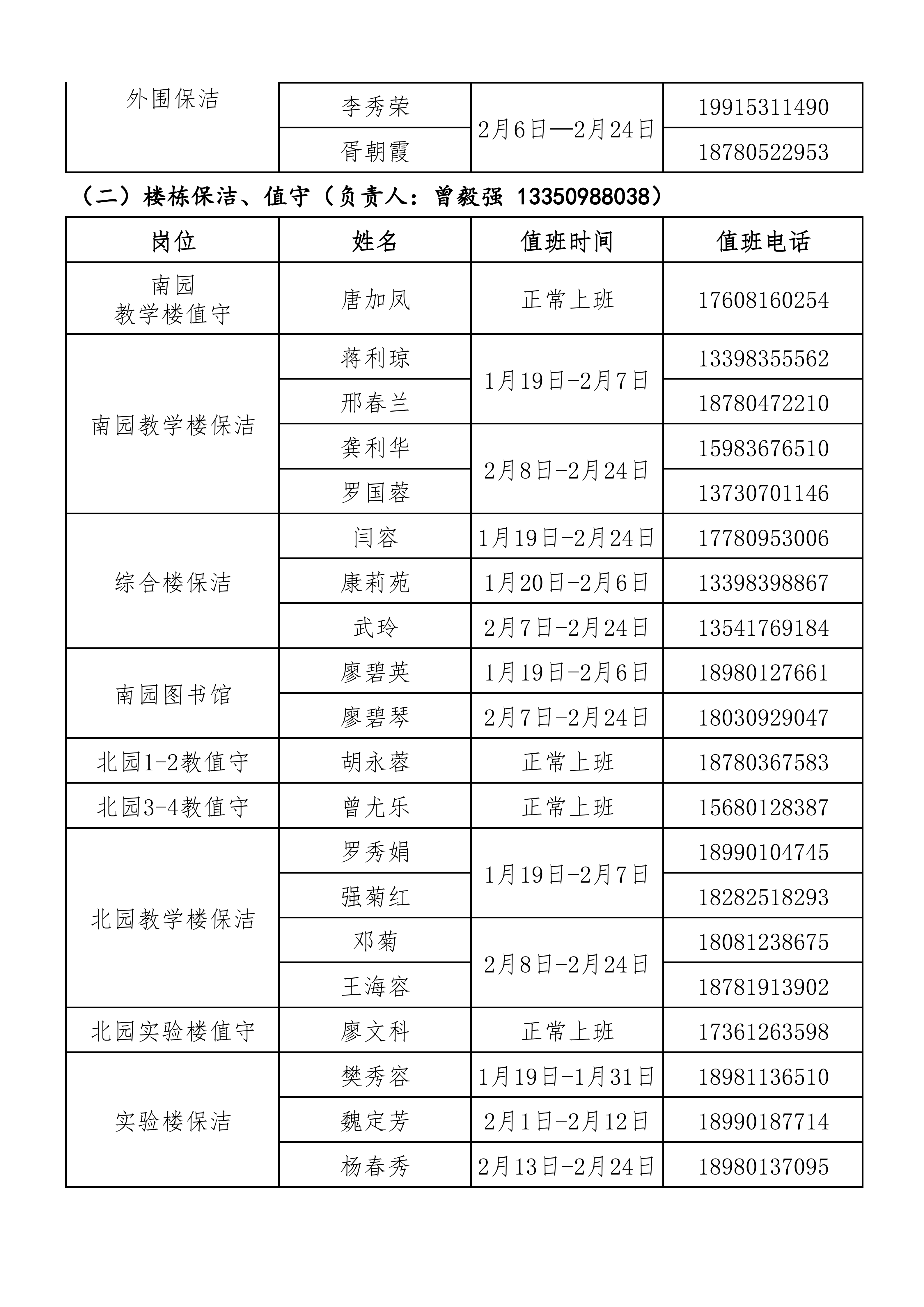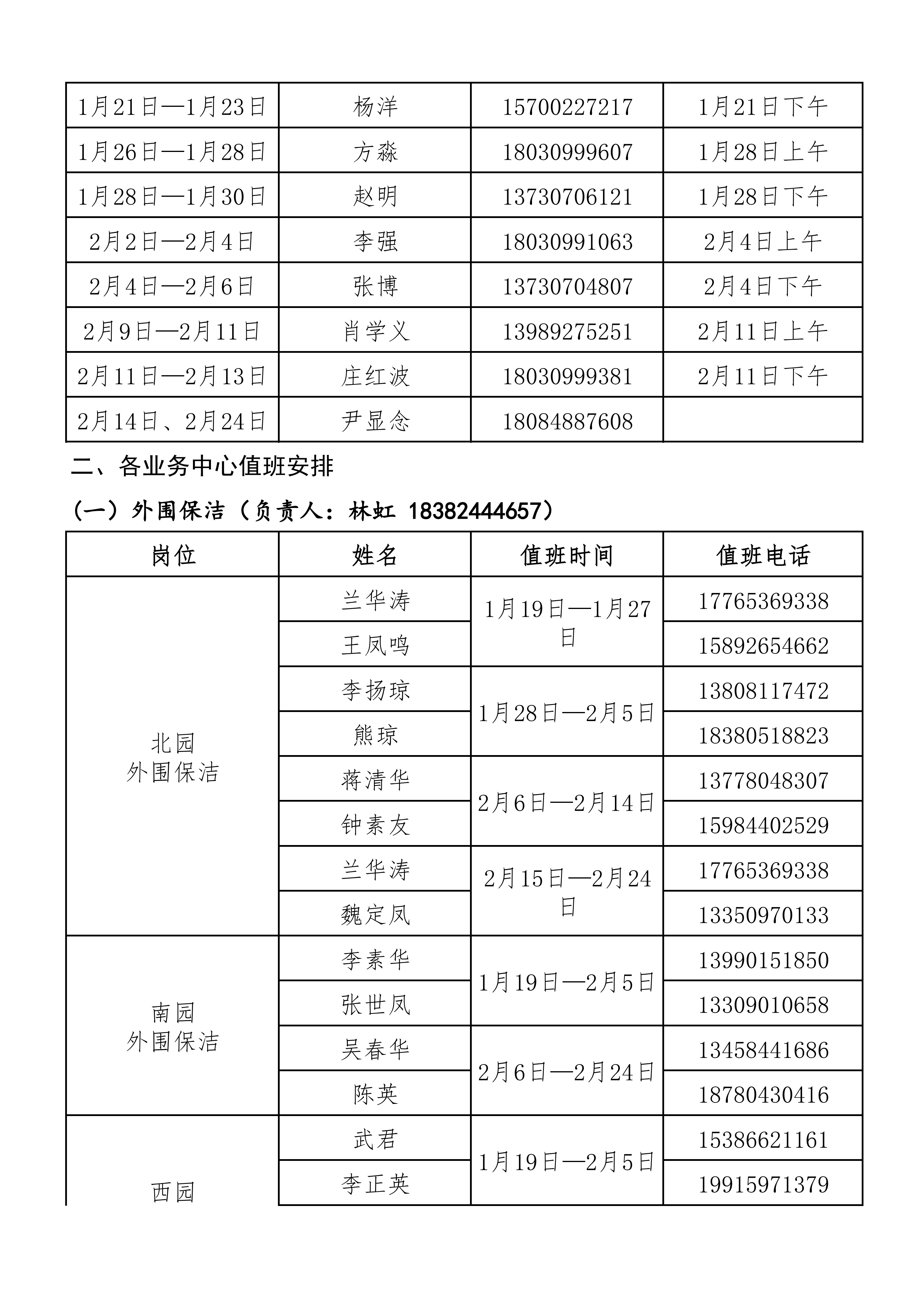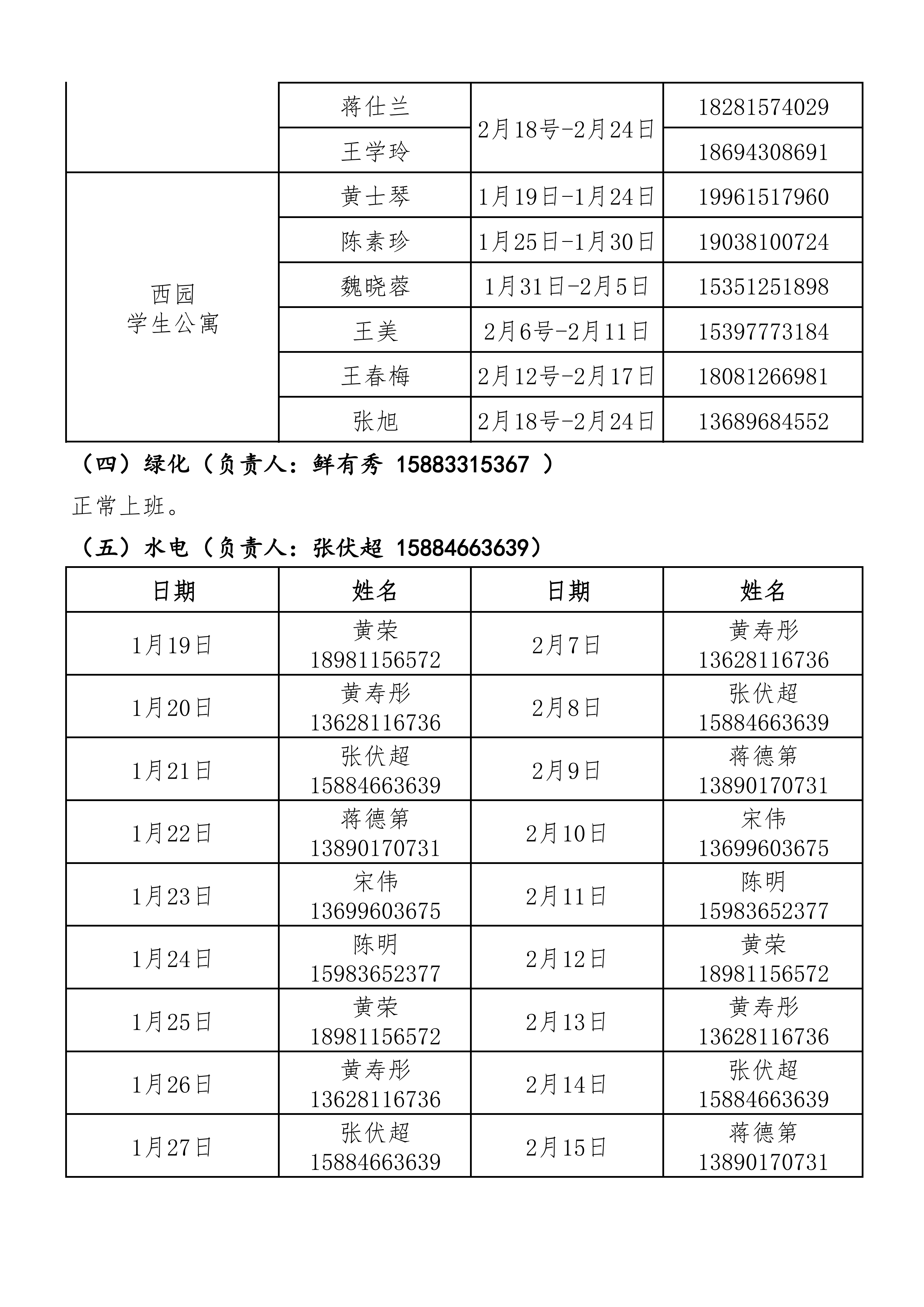 后勤服务管理处2026年寒假值班安排表