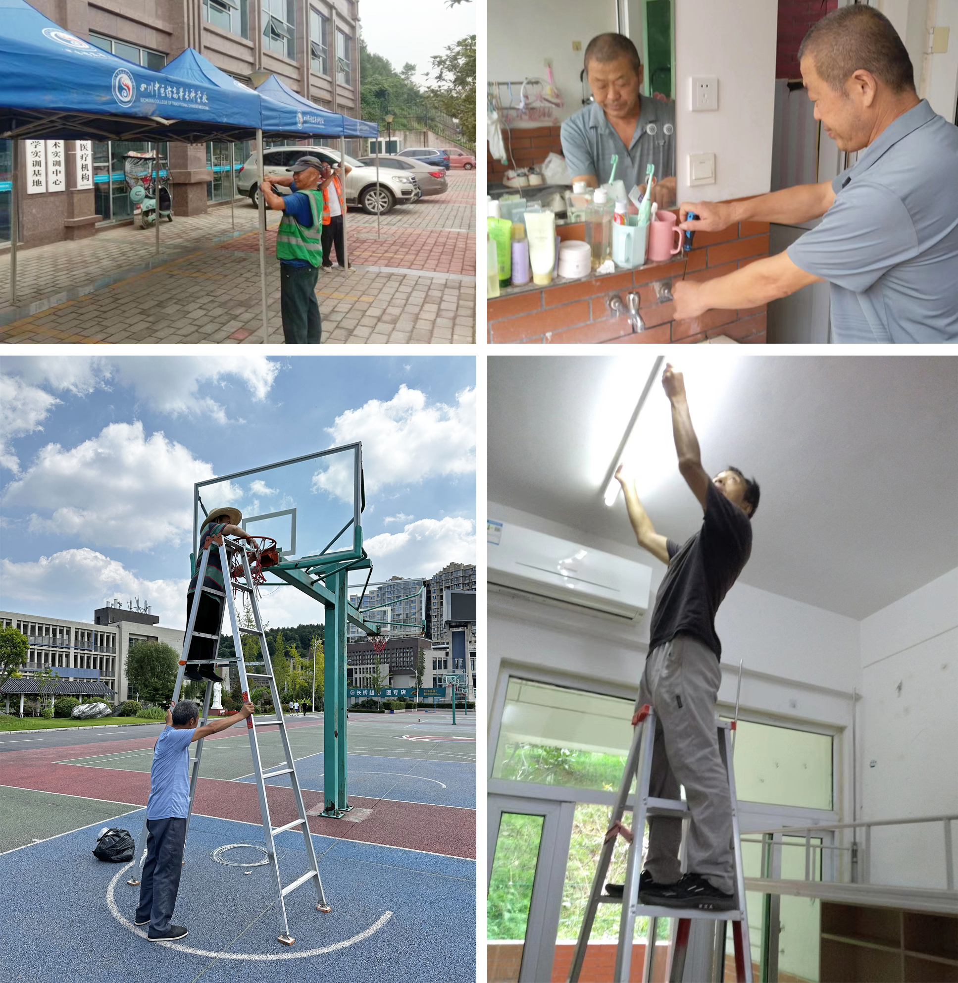 学校后勤部门提前检修校园内设施设备、搭建迎新帐篷、协助学工部门布置迎新场地。