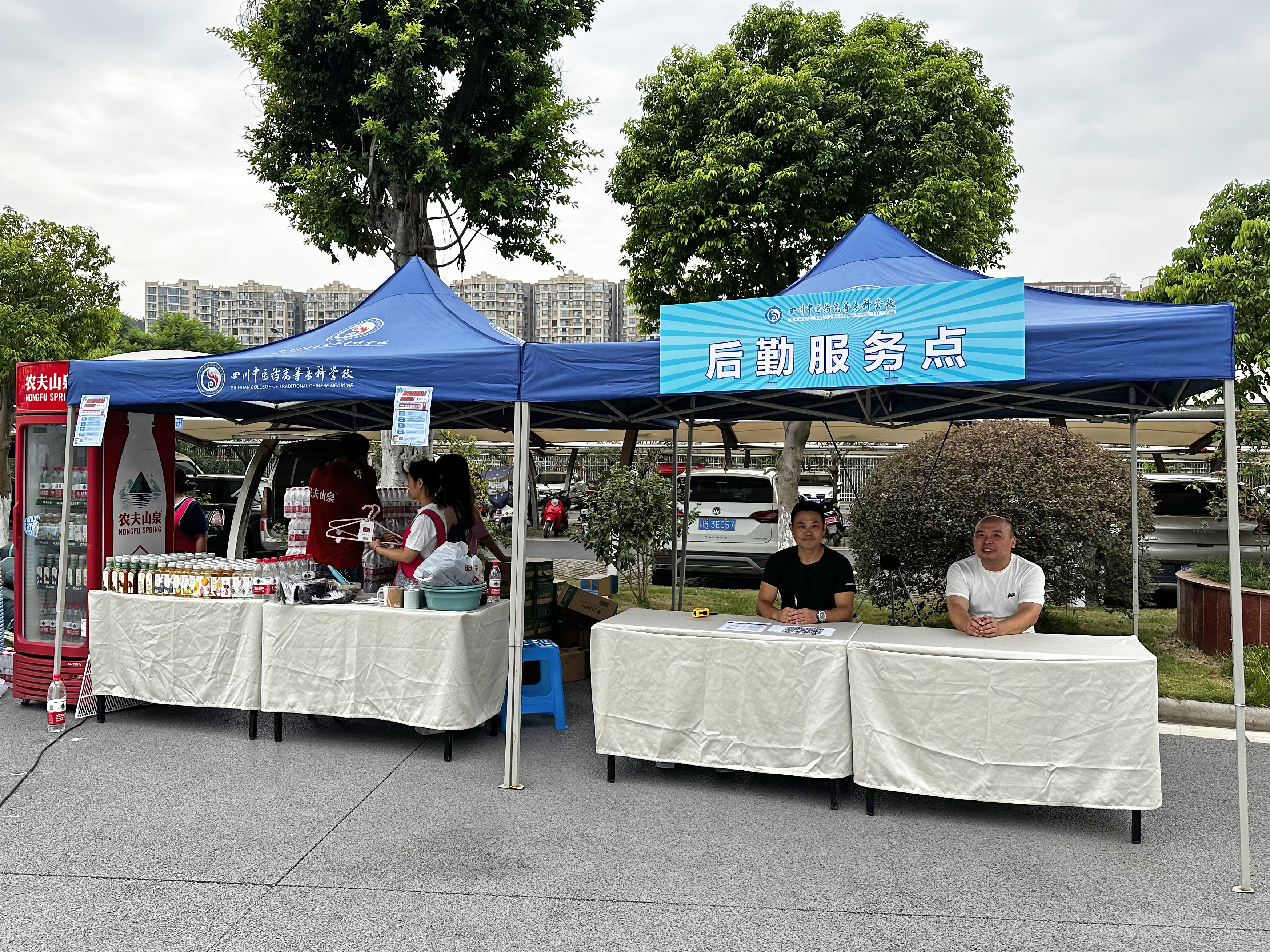 为迎接新生,学校在报名点设置了后勤服务点,并准备了各类清凉解渴的饮品及同学们后续所需的生活用品,值班老师热情地为前来咨询的新生和家长解答相关疑惑。