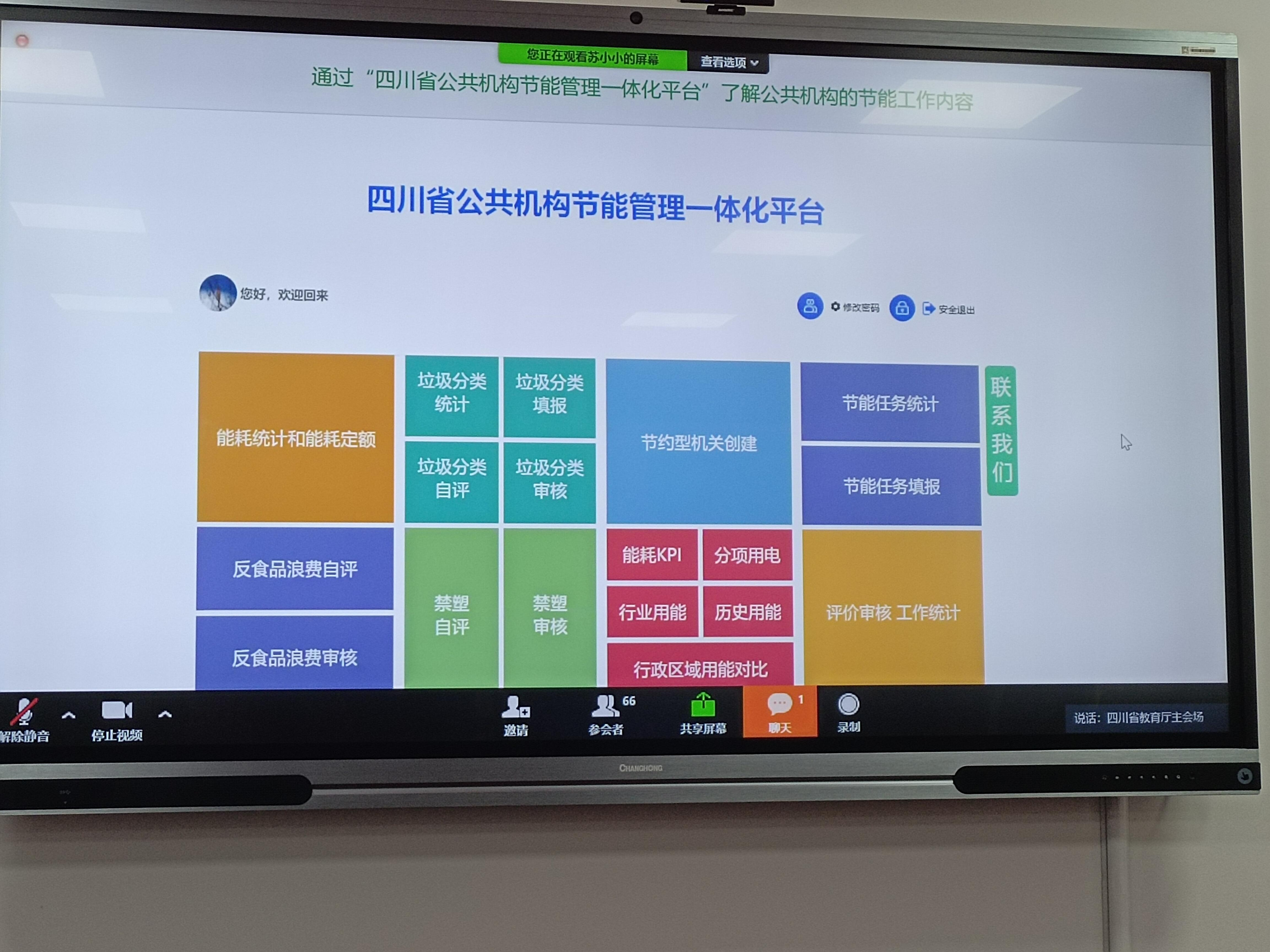 4月15日上午9:30后勤管理处副处长唐莉带领部门同事参加了全省教育系统公共机构能耗统计培训视频会,会议主会场在成都召开,目的切实加强教育系统公共机构能耗数据填报和统计工作,提升节能管理队伍业务水平。