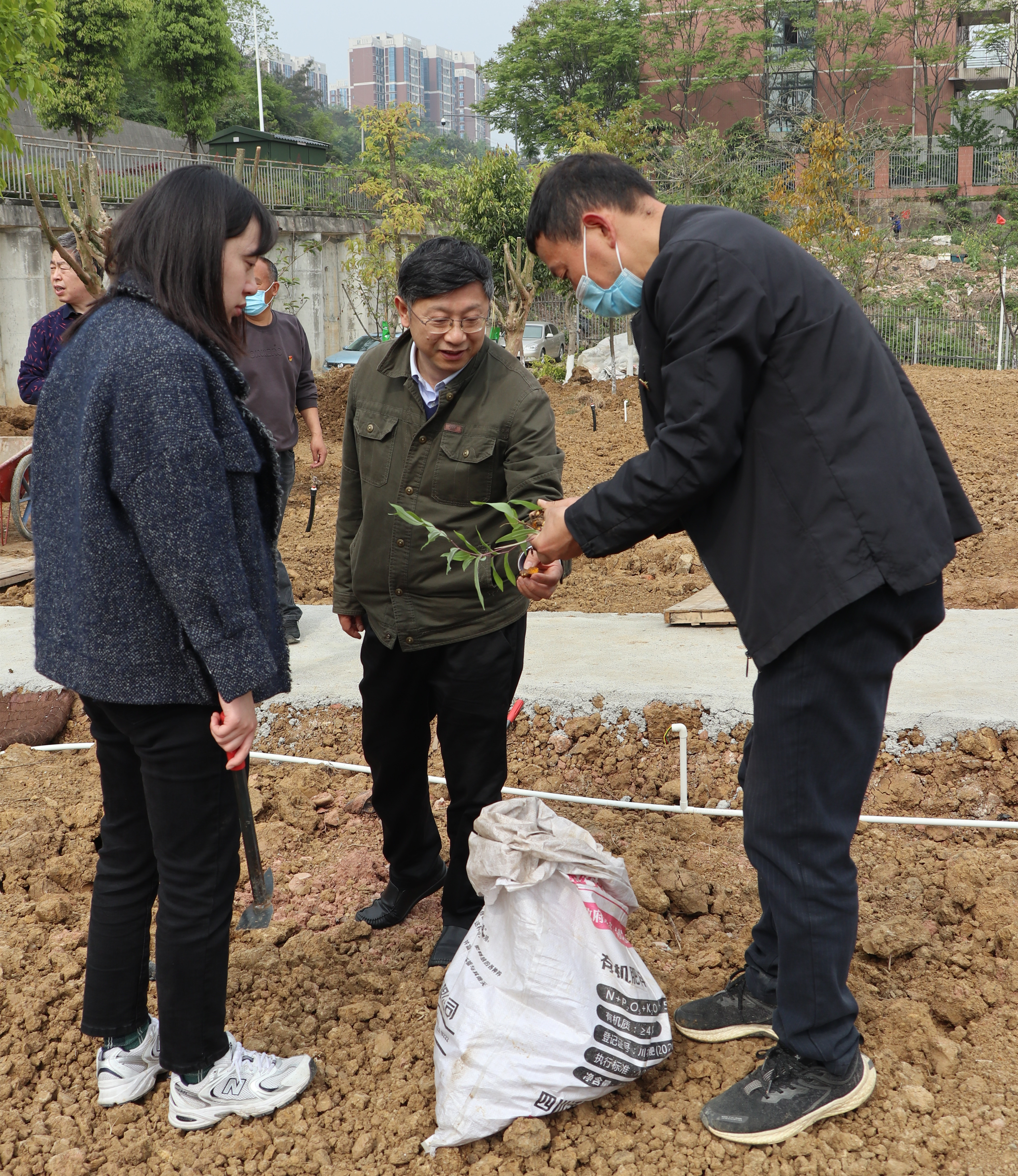 4月8日,后勤服务集团组织开展了“植树种药 美化校园”活动,校长王飞、副校长席斌与后勤党总支、后勤服务集团的40余名职工一起,在我校药用植物园种植了姜黄、天门冬、黄精、梨树等苗木近350株,进一步践行绿色发展理念,优化育人环境。