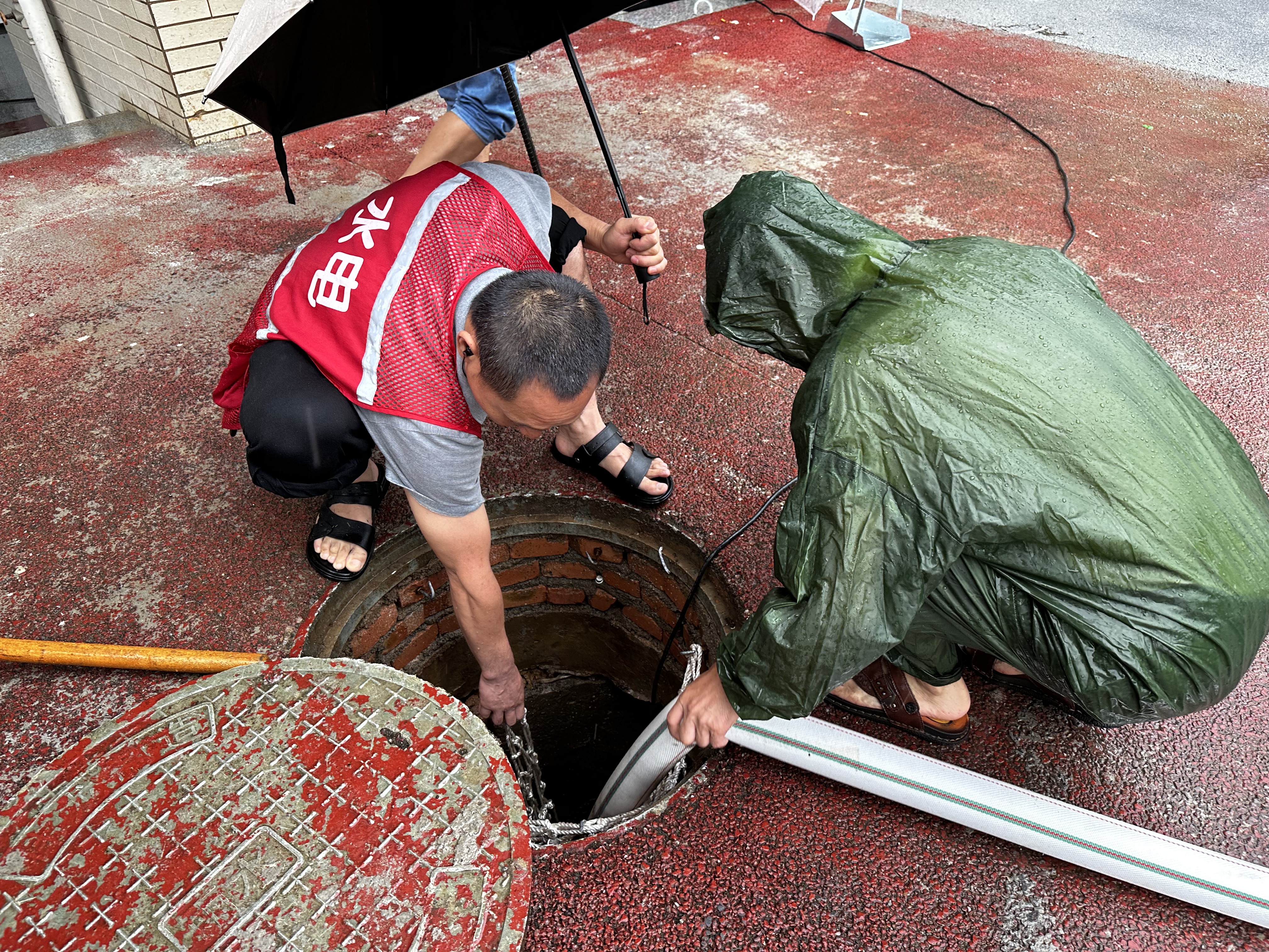 水电工疏通雨水井内管道