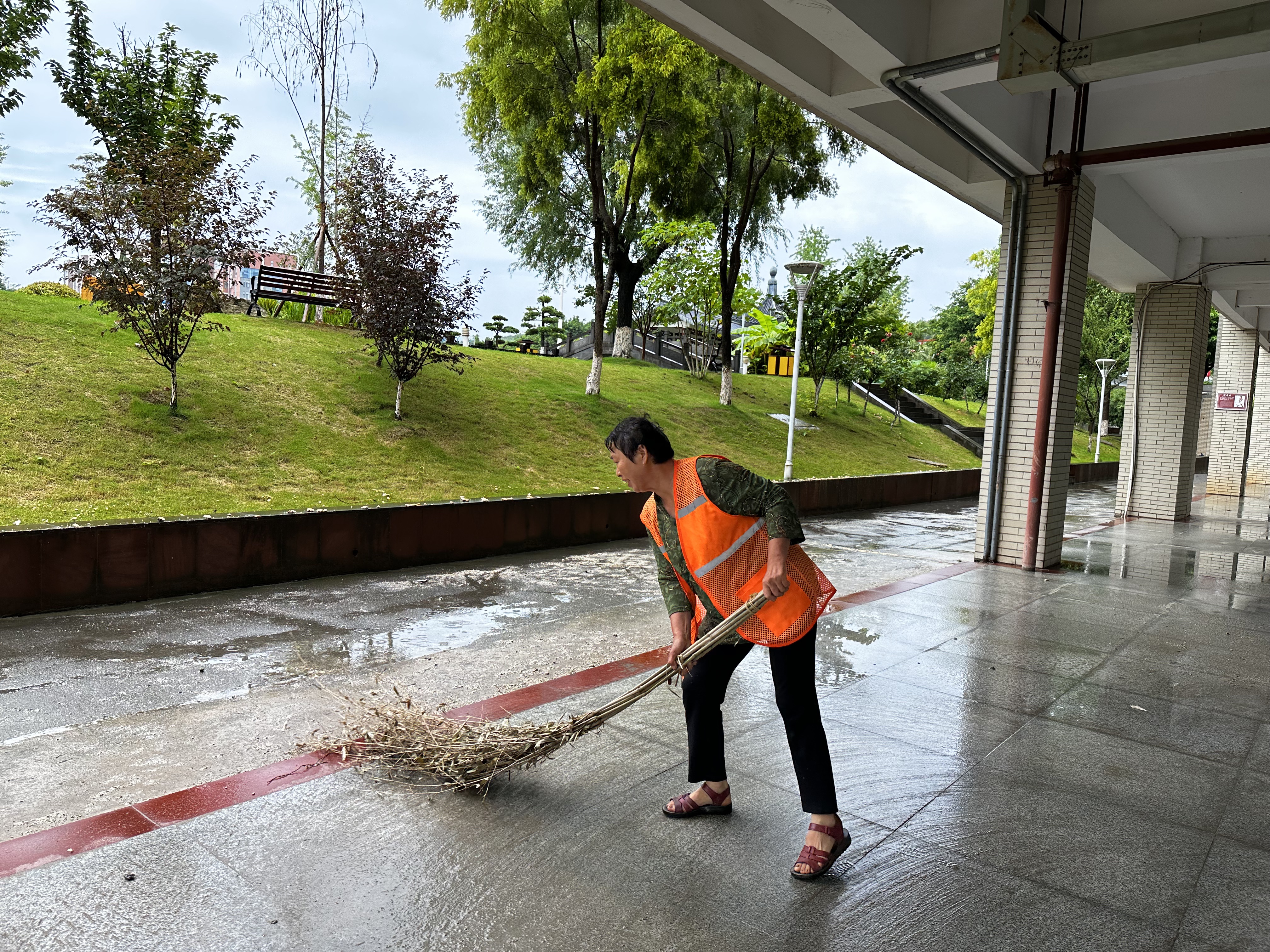 保洁迅速清扫路面积水