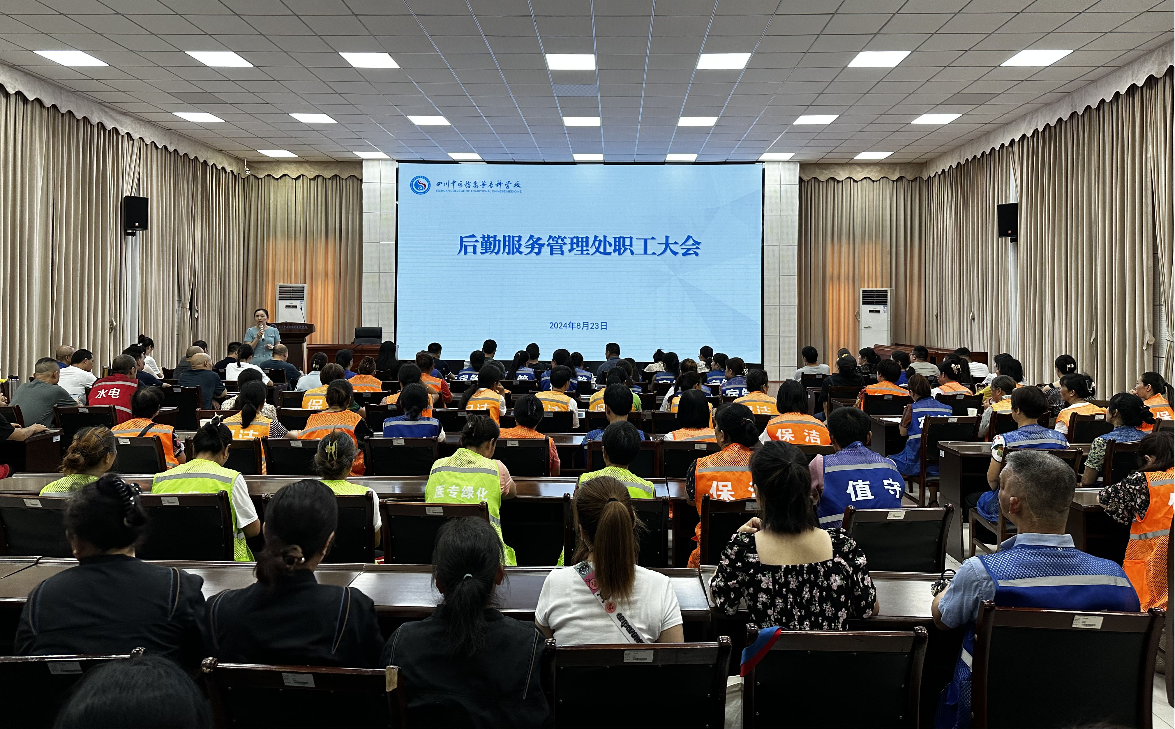 为促进全体职工尽快进入工作状态,收心归位,为新学期开好头、起好步,推进后勤保障工作高质量运行。8月23日上午,后勤服务管理处在综合楼5楼会议室召开新学期全体职工大会。部门负责同志、各中心全体职工出席会议。