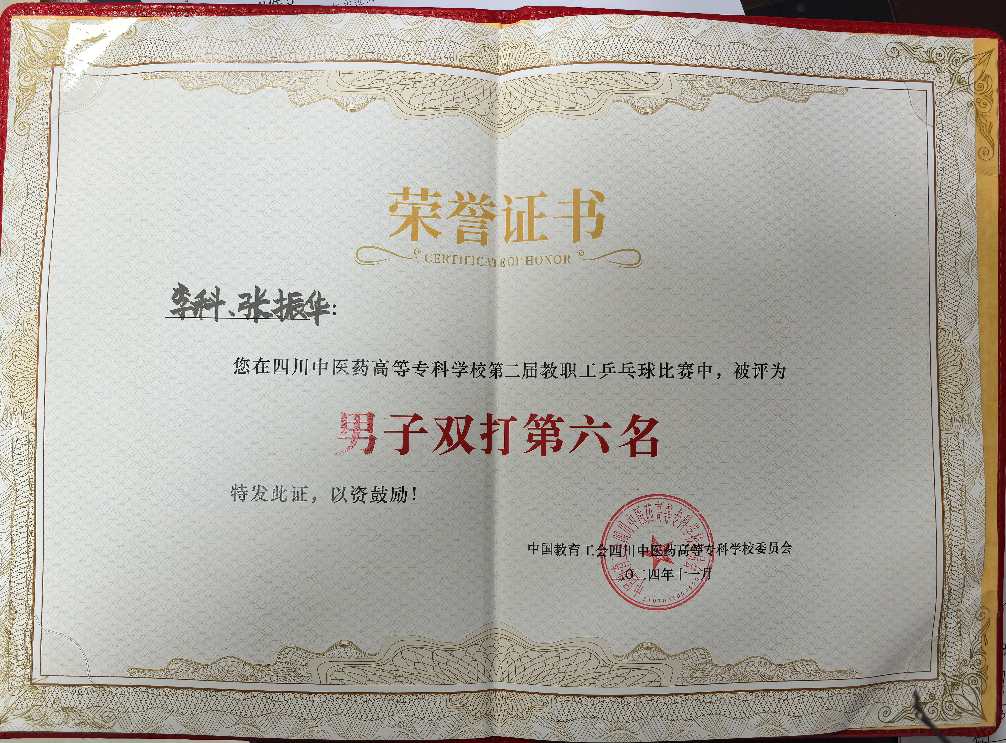 祝贺后勤分工会李科、张振华同志在教职工乒乓球比赛中获得名次