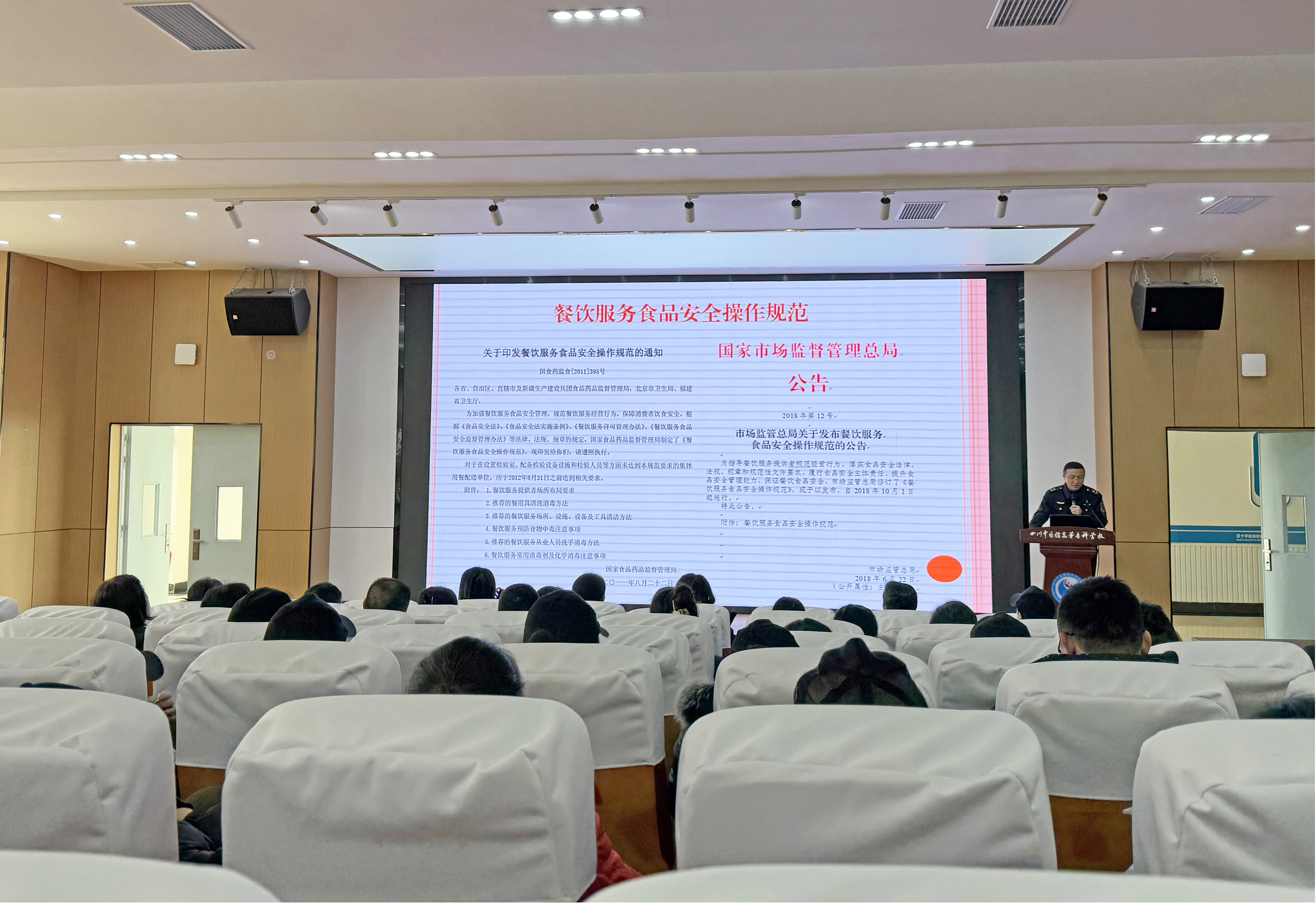 何洪洪围绕新旧规范对比、场所布局及设施设备要求、原料管理要求、加工制作要求等关键环节进行了详细讲解,要求全体从业人员要以高度的责任心和细致入微的态度,恪守工作职责,认真对待食品操作每一个环节,用心筑牢食品安全防线。