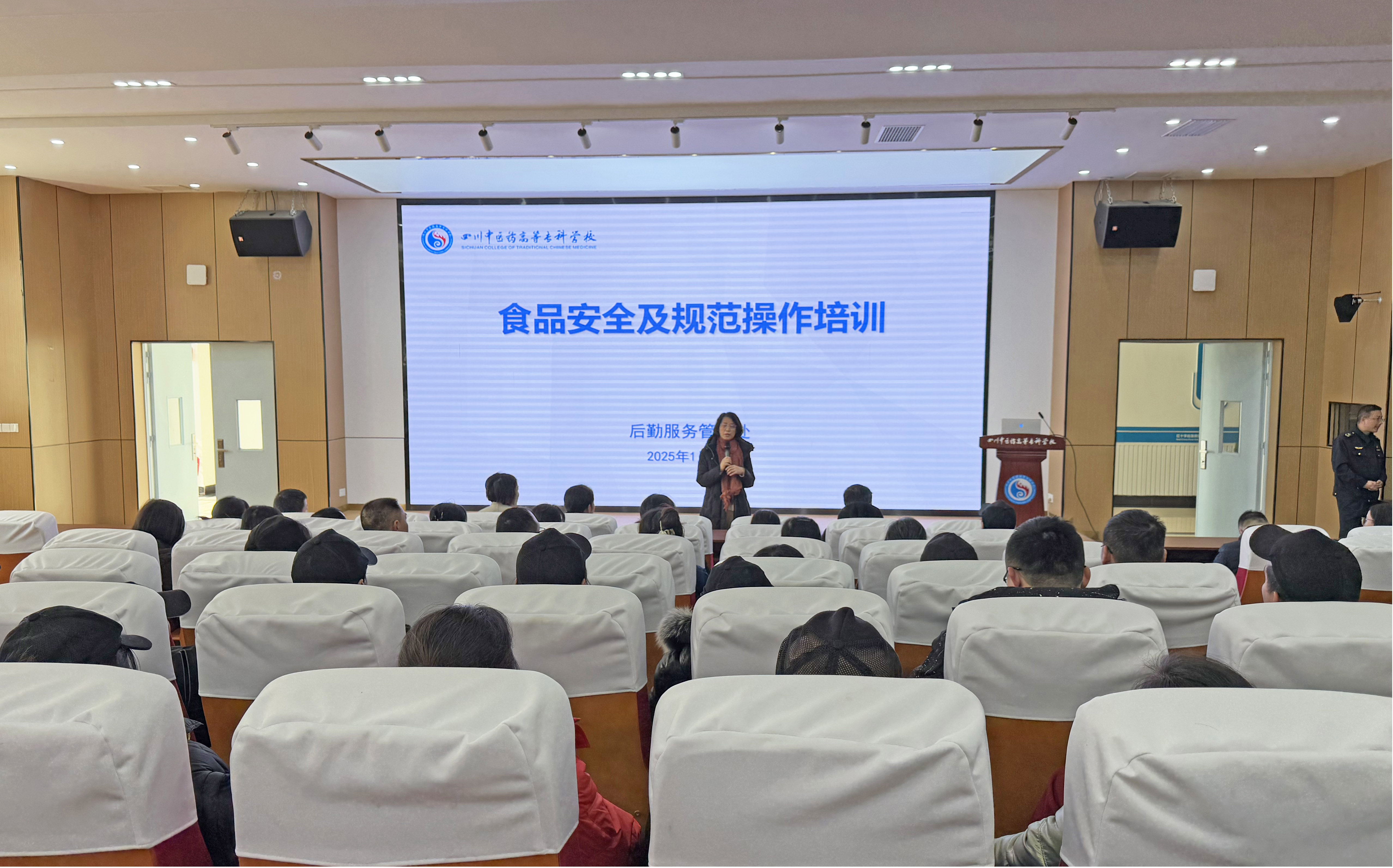 1月2日,我校邀请到涪城区市场监督管理局青义监管所副所长何洪洪开展餐饮食品安全操作规范专题培训。副校长肖玲、后勤相关负责人及食堂工作人员参加。